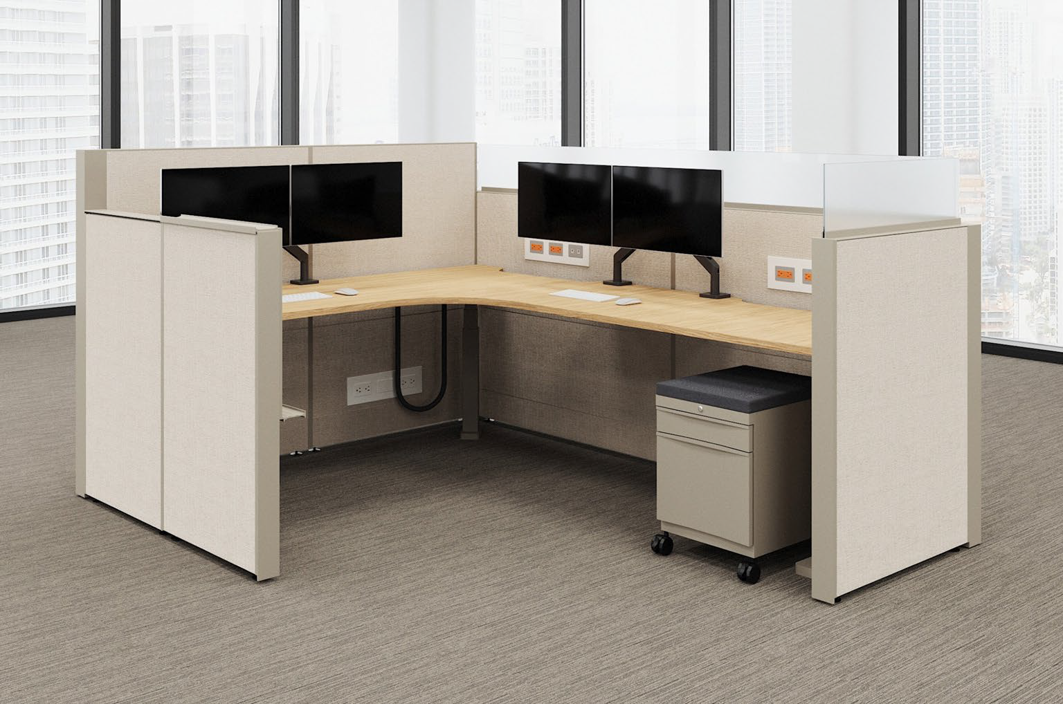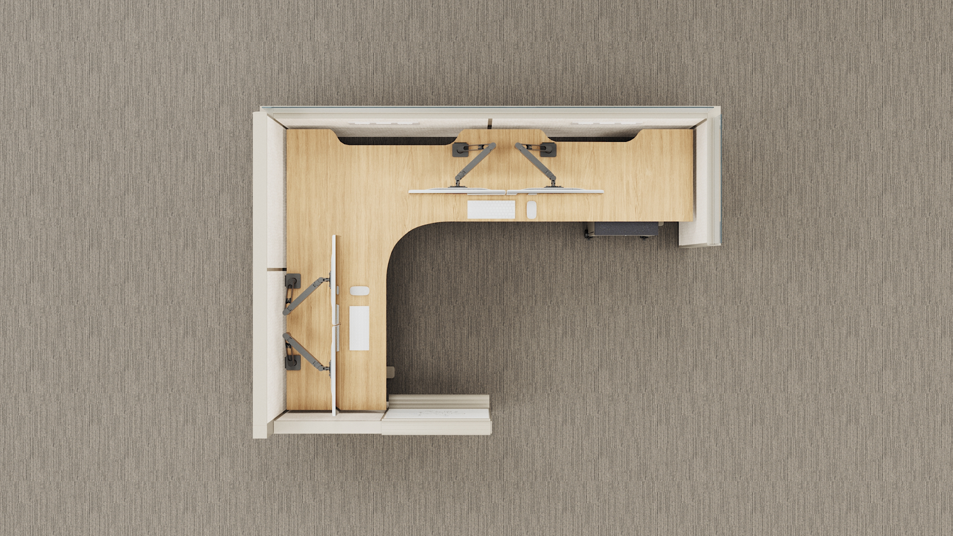Curved inner corner with wire management cut-outs at back edge